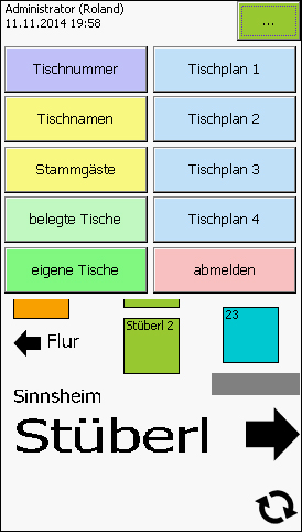 Haben Sie einen grafischen Pfeil am Tischplan, dann ist dieser ebenfalls klickbar und es wird entweder der vorige oder der nächste Tischplan geladen.